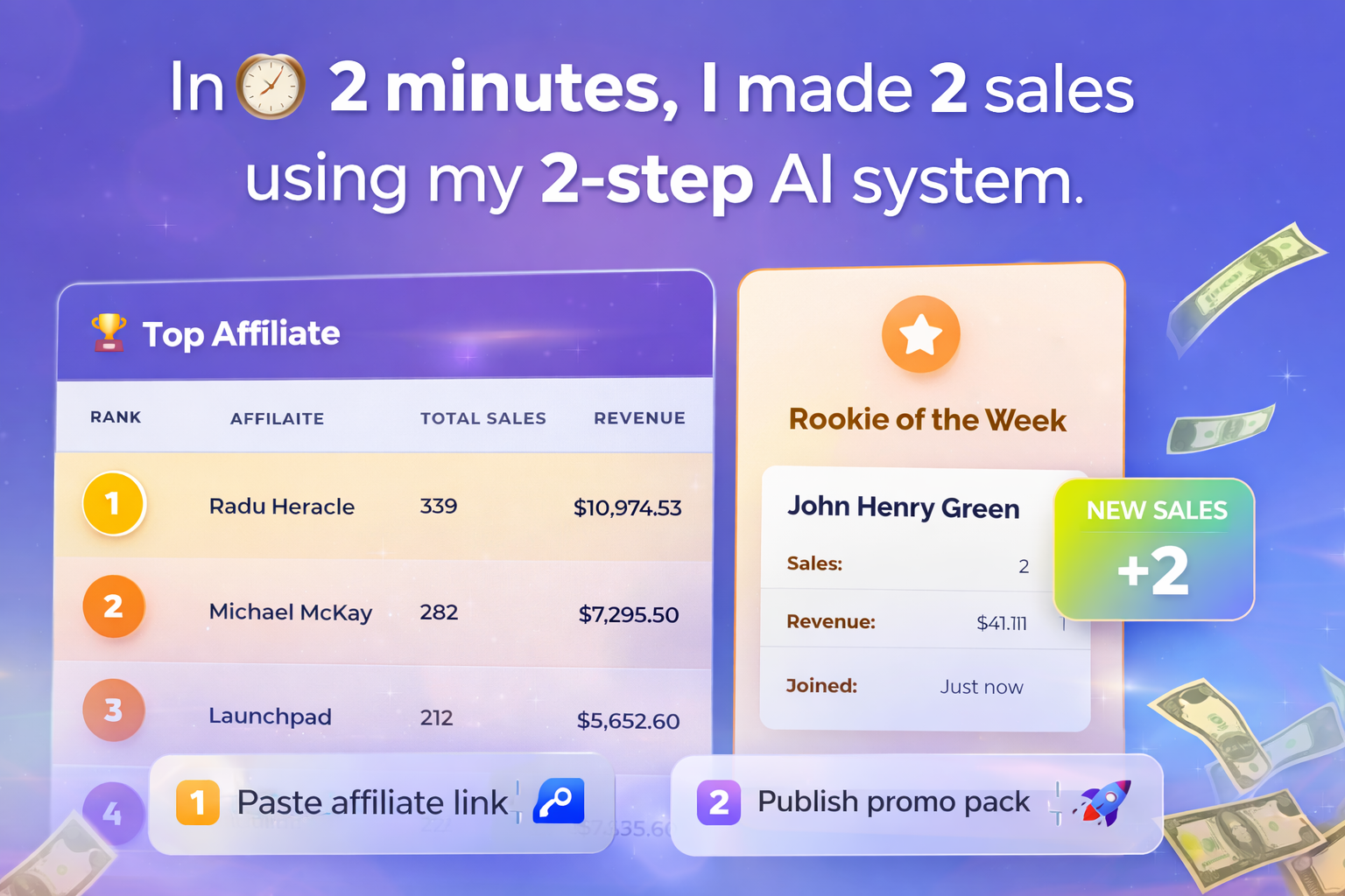 My exclusive free report shows you the exact 2-steps that allow me to hit the affiliate boards ASAP! I was "Rookie of the Week" within minutes of joining! (Check it out)
